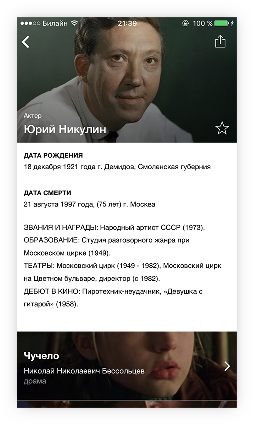 The app contains a few thousands of films and actors with beautiful design of each page.