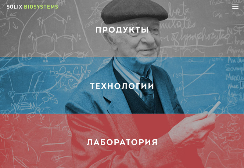 Each section of the site is designed in the form of a long page, detailing the products and technologies of the company.