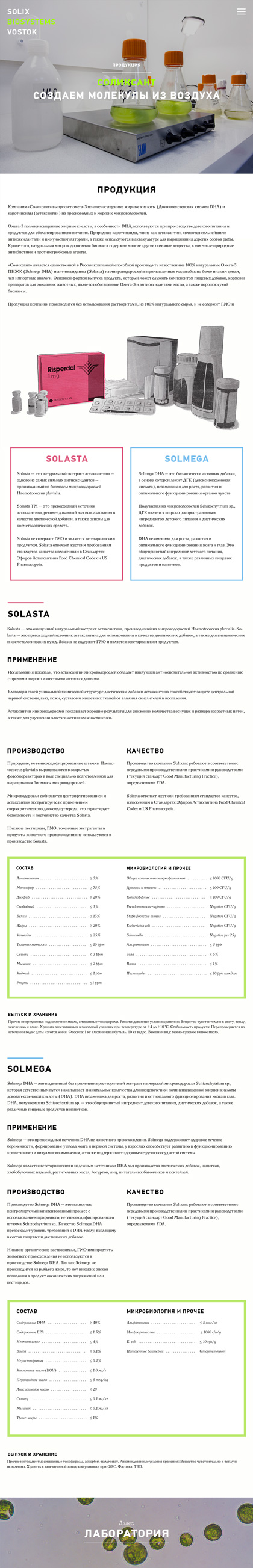 A modern interactive website has been developed for Solixant. An interactive animation, showing a look through the microscope, is designed for the main page. Microalgae passing the screen on a background that simulates noise, visible in microscope.