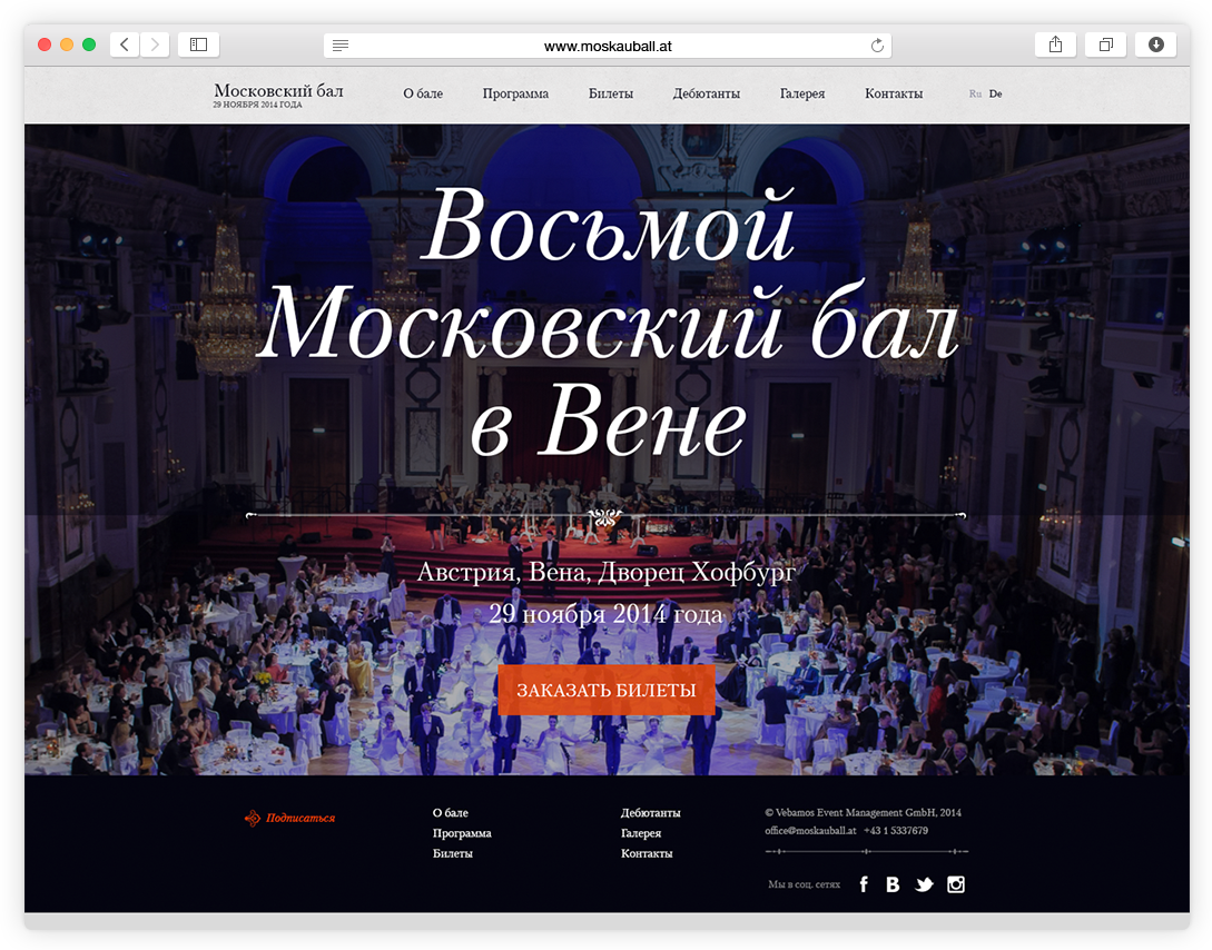 После успеха Русского бала в Лондоне разработан сайт для Московского бала в Вене. Сайт выполнен в более простом стиле, подчеркивающем европейскую направленность бала.